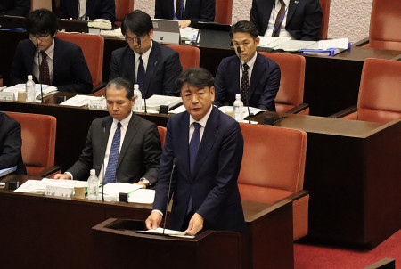 東京電力ホールディングスの小早川智明社長(手前)は16日、新潟県議会の委員会に参考人として出席し、柏崎刈羽原発(同県)の1、2号機の廃炉に向けた検討に入ると表明した=同日午前、新潟市 【時事通信社】